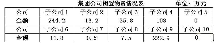 如按集团各子公司地域划分,在省内片区(子公司1、2、3、4、5),北方片区(子公司6、7),西南片区(子公司8、9、10),按不同配件使用周期合理调配,在合成氨系统推行同型配件联合库存,可减少约406万元的资金占用。