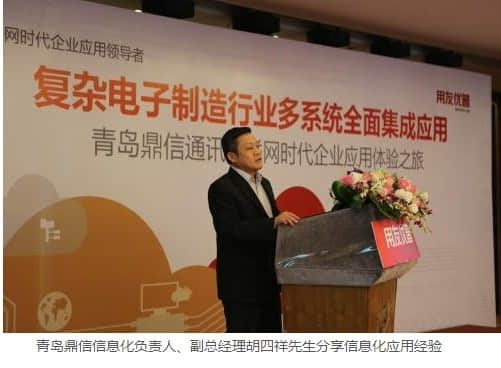 2014年5月20日,由用友优普信息技术有限公司青岛分公司主办的“复杂电子制造行业多系统全面集成应用”活动正式在青岛府新酒店成功举办。覆盖全国各地、囊括用户、专家以及媒体人士共计150余人参加了本次大会。用友优普高级副总裁卢刚、用友优普助理总裁傅毅、用友优普青岛分公司总经理李瑞明出席会议。青岛鼎信通讯股份有限公司副总经理胡四祥等来自山东等制造企业信息化负责人在此次会议上进行了交流分享。