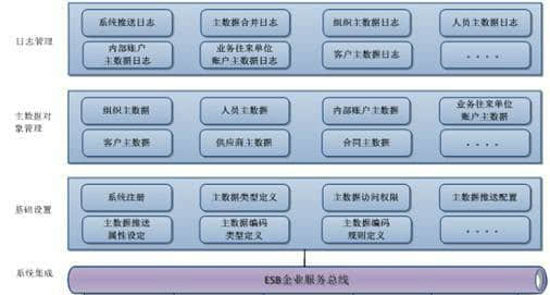 对于希望实时获知数据变动的系统发布数据广播标准。比如人员数据变动广播,当有一条或是多条人员数据发生变动的时候,主数据管理平台将向服务总线广播这个信息。服务总线负责将信息发送到所有关注这个消息的系统。对于某个应用系统而言,如果他关系人员数据的实时变动,那么这个系统需要实现指定的服务,并在总线完成注册。