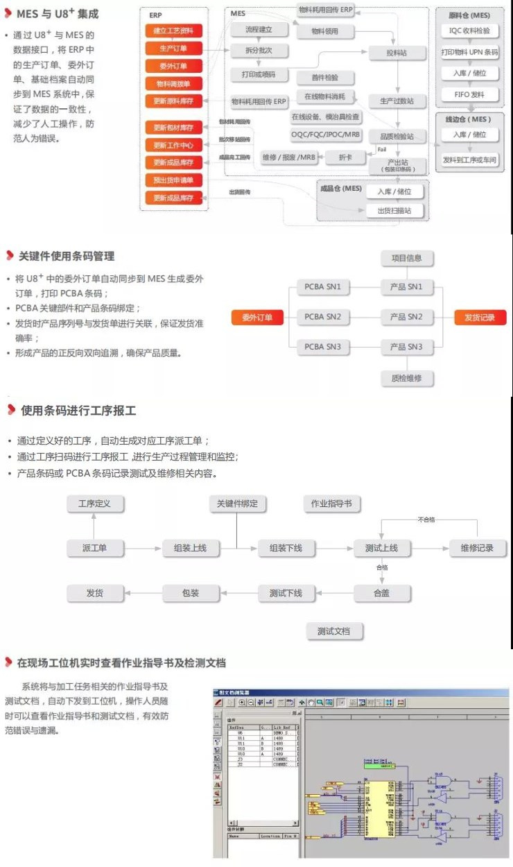 武汉精测电子属于电子行业,其产品主要是平板显示测试系统,在国内处于 领先地位。在 U8+ 成熟应用基础上,通过引入 MES,实现了工序用料齐套检查、 产品全生命周期条码质量追溯,条码报工等应用,及时反馈车间现场状况及作业 进度,为企业迈向数字化制造奠定了基础。