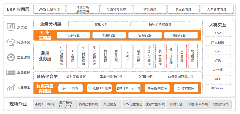 MES(Manufacturing Execution System)系统是基于精益生产、智能制造管理理念的一套生产执行管控系统,实现了与ERP系统的数据共享与业务协同、与底层自动化设备的PLC系统打通,MES对车间人、机、料、法、环、质等生产要素进行全面管控,实现企业精益制造和数字化管理。