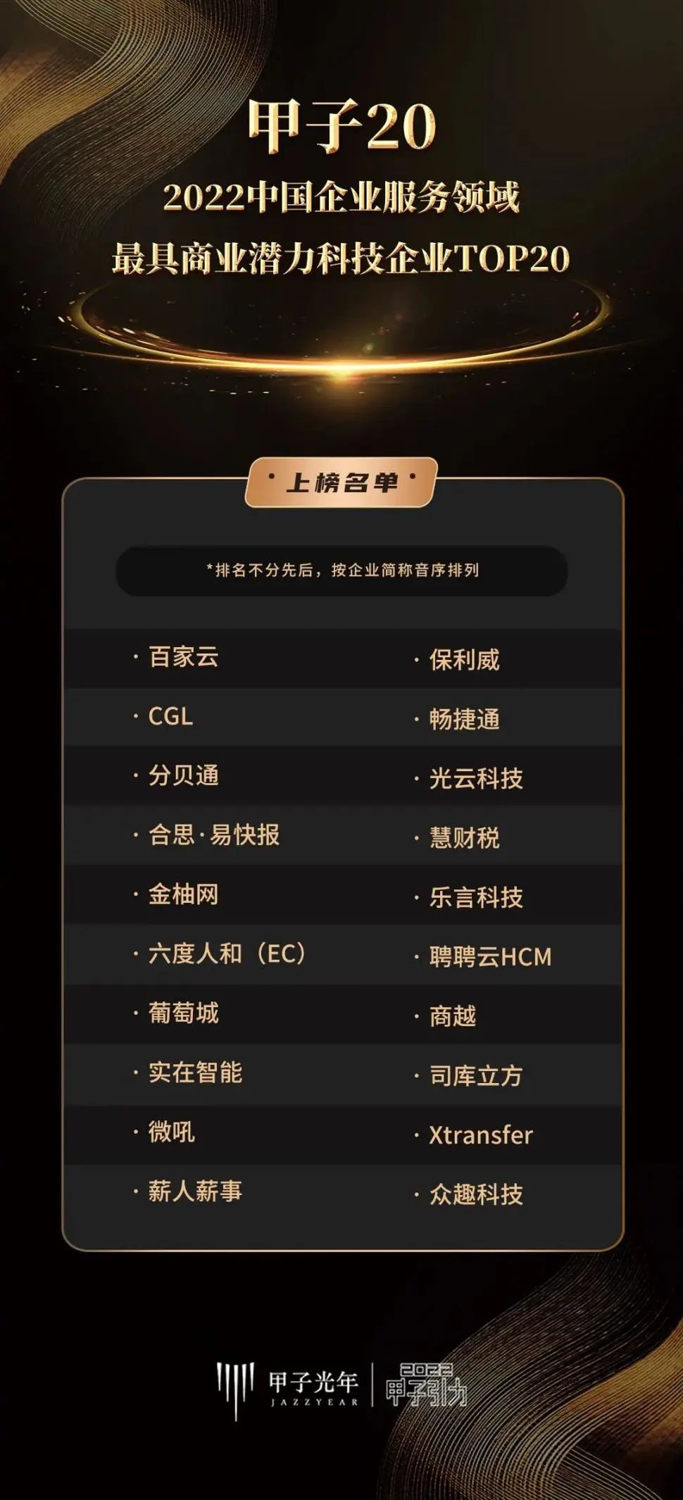 2022「甲子引力」年终盛典大会于12月7日-12月10日在线上成功举办。官方通过对近千份企业资料的多轮遴选,综合专业评审团意见,畅捷通作为小微企业服务领域标杆企业荣获「2022中国企业服务领域最具商业潜力科技企业」。